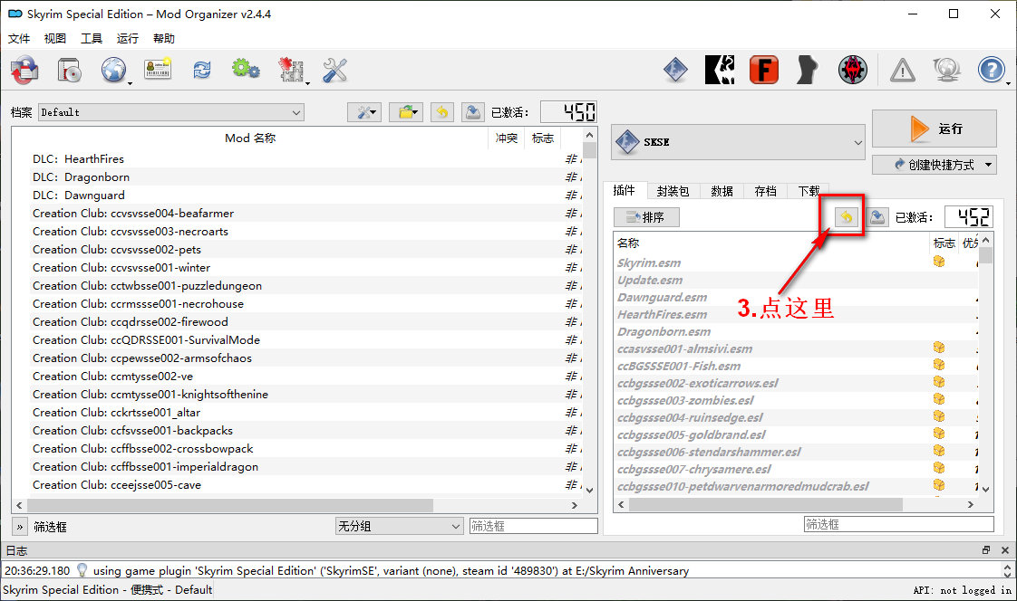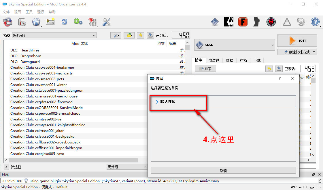 如果打开mo2管理器,排序错乱,或者很多mod没有勾选,按照下面的步骤恢复默认排序。