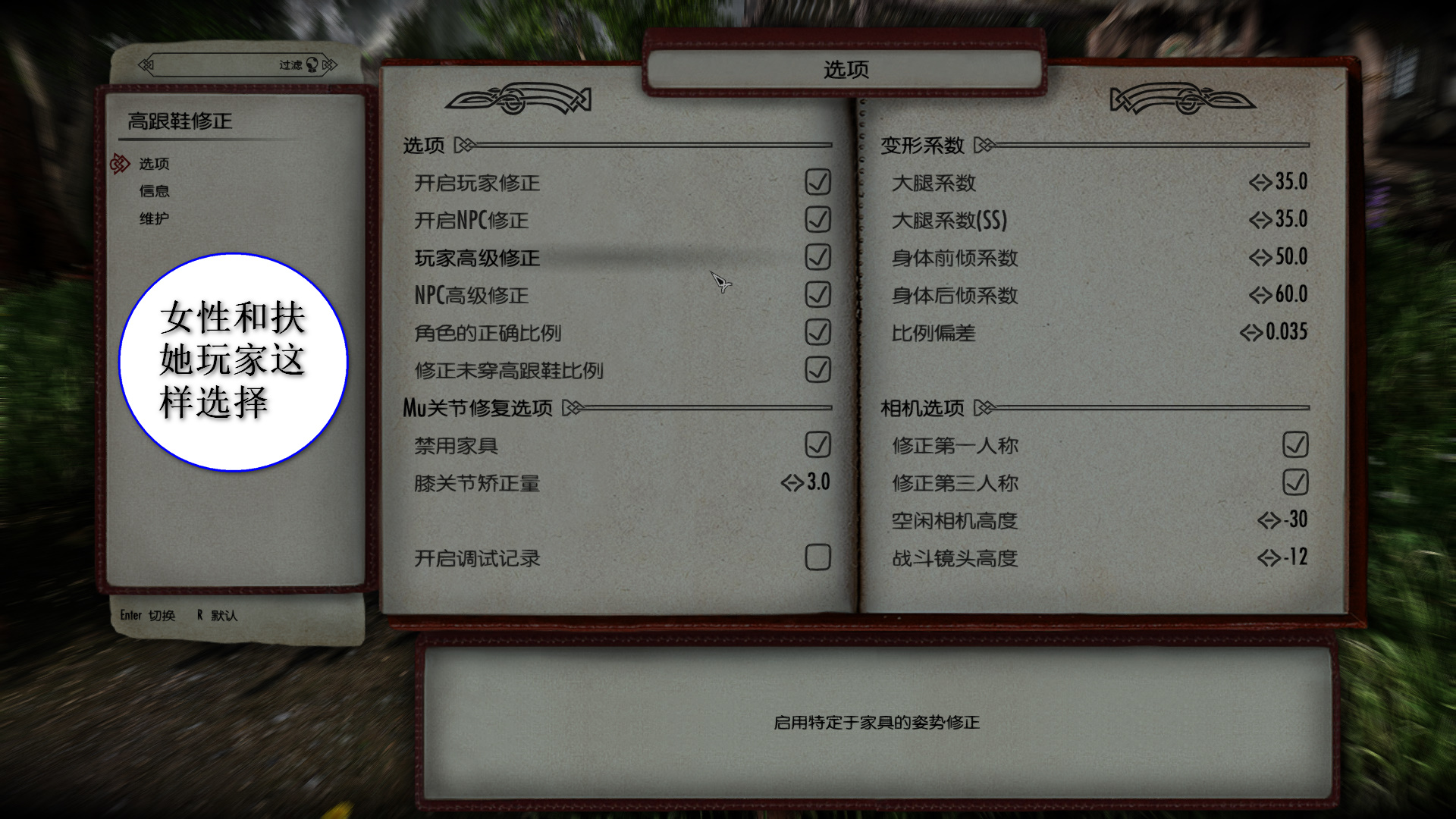 恢复完mcm预设,还有几个Mod需要手工设置: