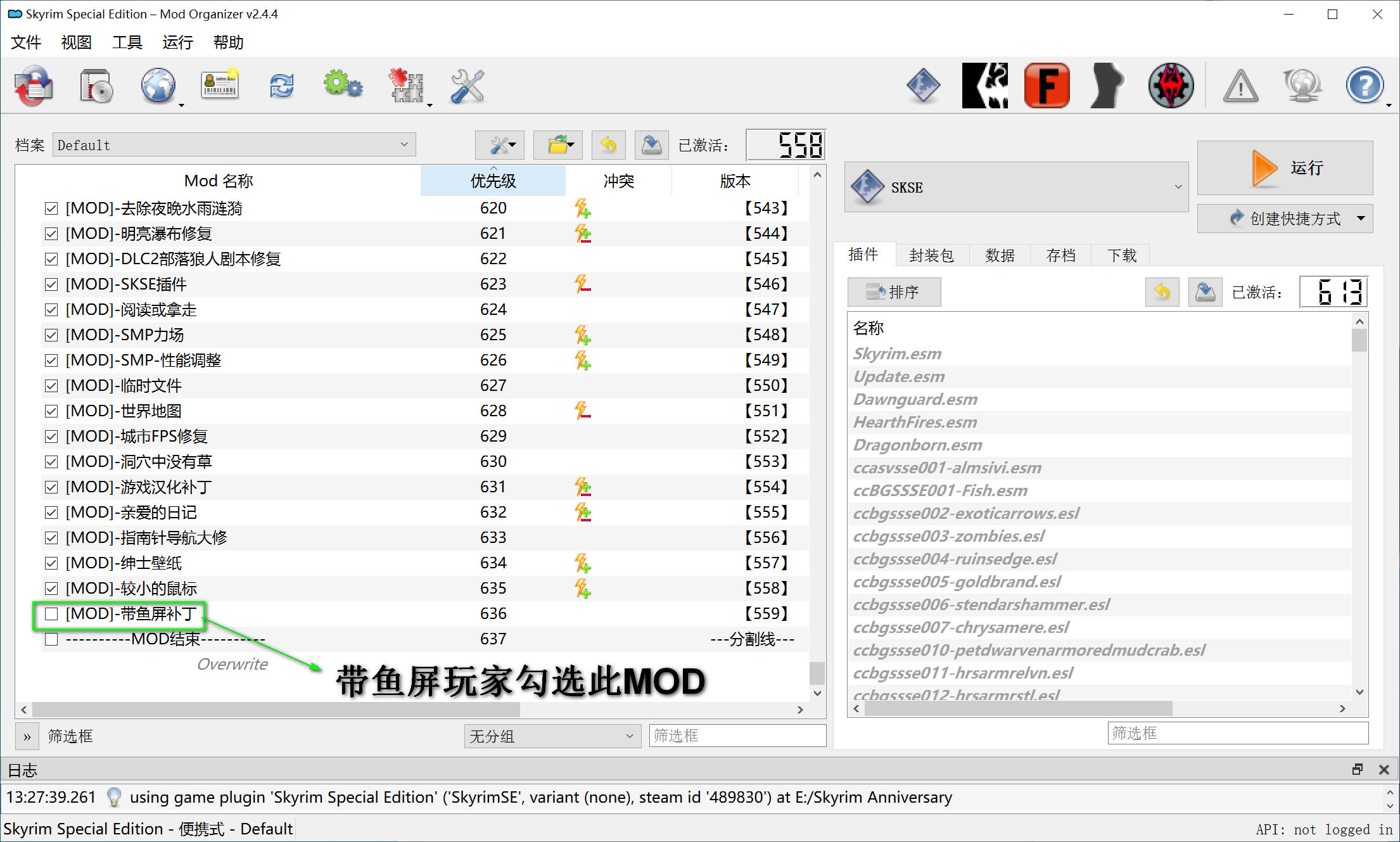 7.如果是带鱼屏显示器,需要在mo2管理器里勾选“带鱼屏补丁”这个mod。