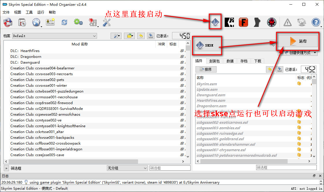 基准目录:E:/Skyrim Anniversary/ModOrganizer 下载目录:%BASE_DIR%/downloads MOD目录:%BASE_DIR%/mods 缓存目录:%BASE_DIR%/webcache 档案目录:%BASE_DIR%/profiles 覆盖文件目录:%BASE_DIR%/overwrite 受管理游戏目录:E:\Skyrim Anniversary\SkyrimSE.exe