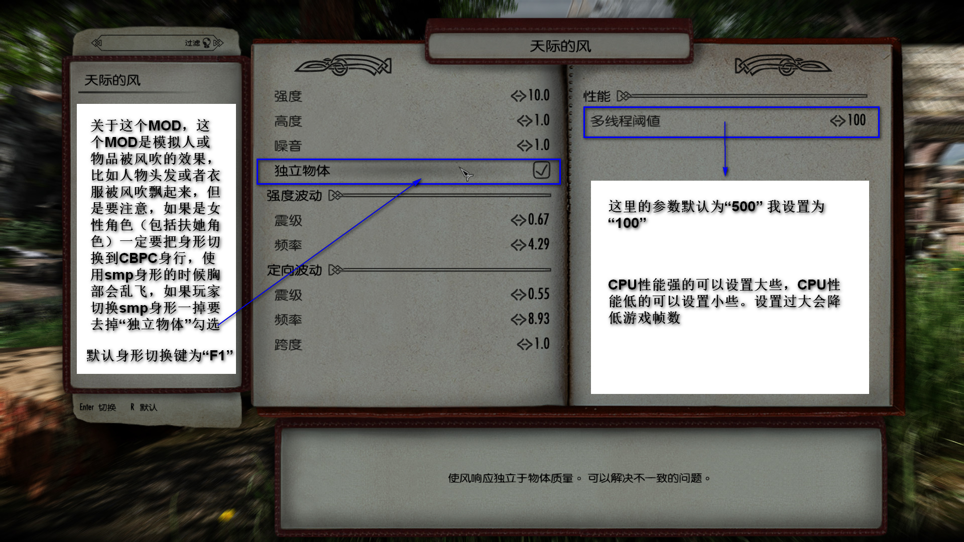 恢复完mcm预设,还有几个Mod需要手工设置: